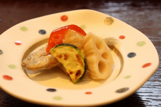 蓮根、ズッキーニ、焼葱、赤万願寺唐辛子