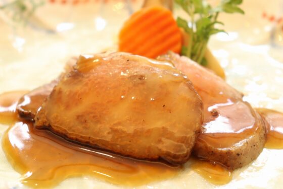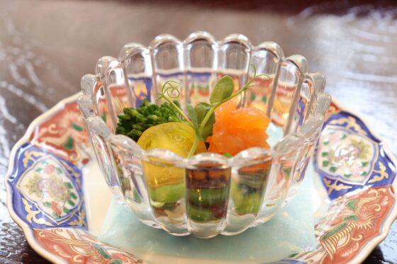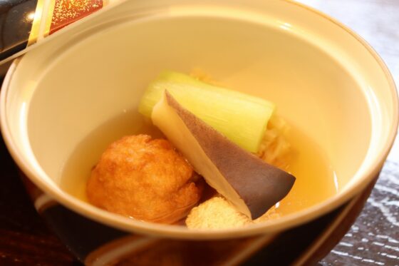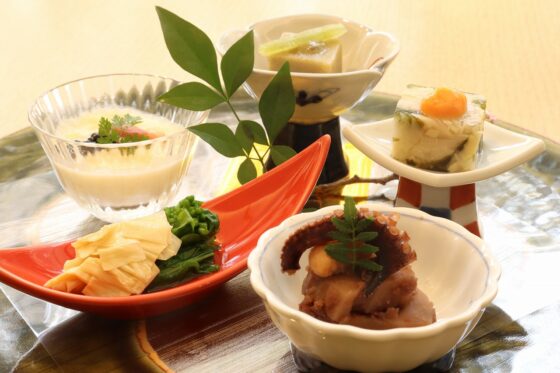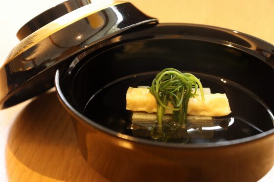 はす芋、アワビ茸、鯛出し薄餡